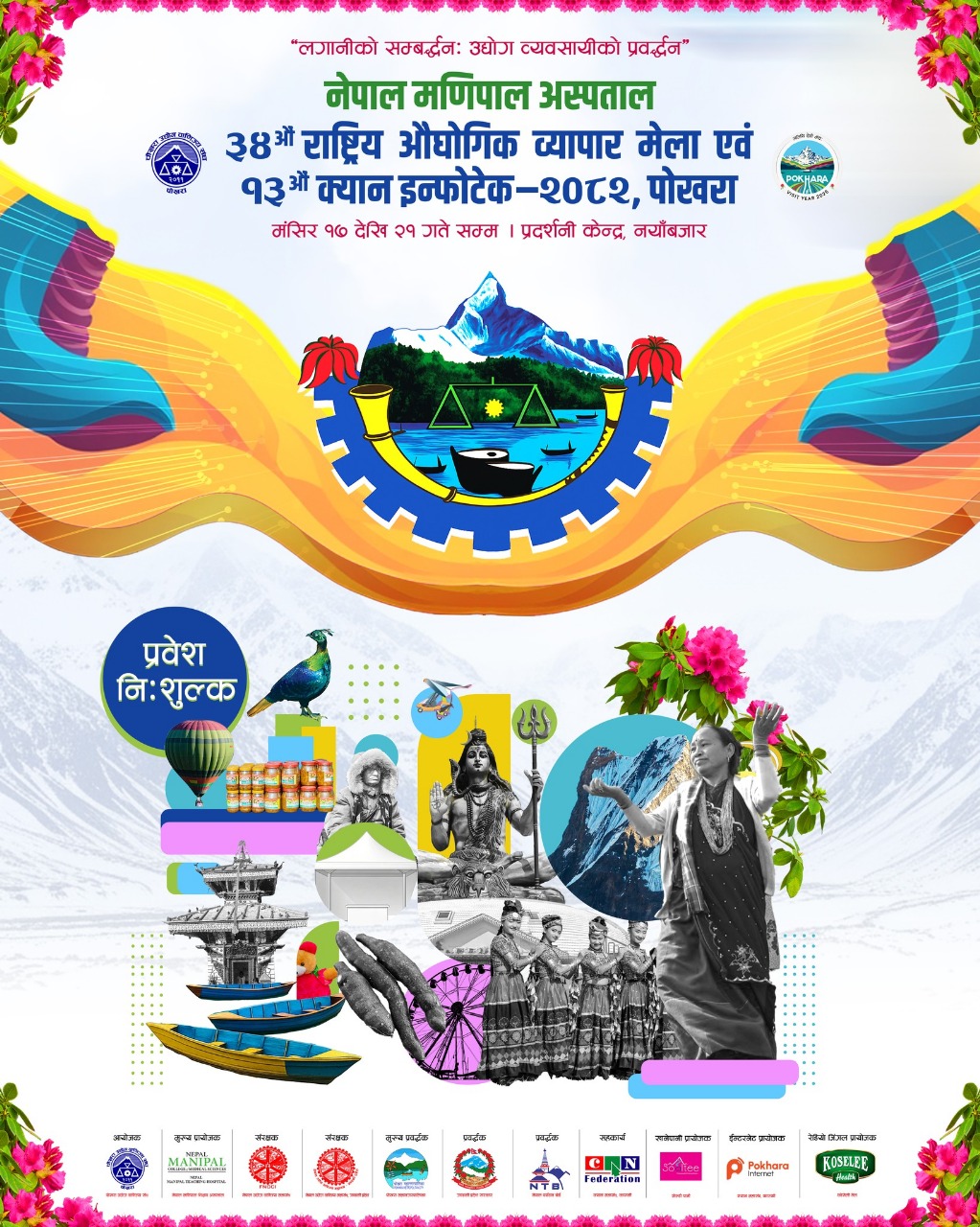 पोखरामा यही मङ्सिर १७ देखि नेपाल मणिपाल अस्पताल ३४ औँ राष्ट्रिय औद्योगिक व्यापार मेला तथा १३ औँ क्यान इन्फोटेक–२०८२ हुने...