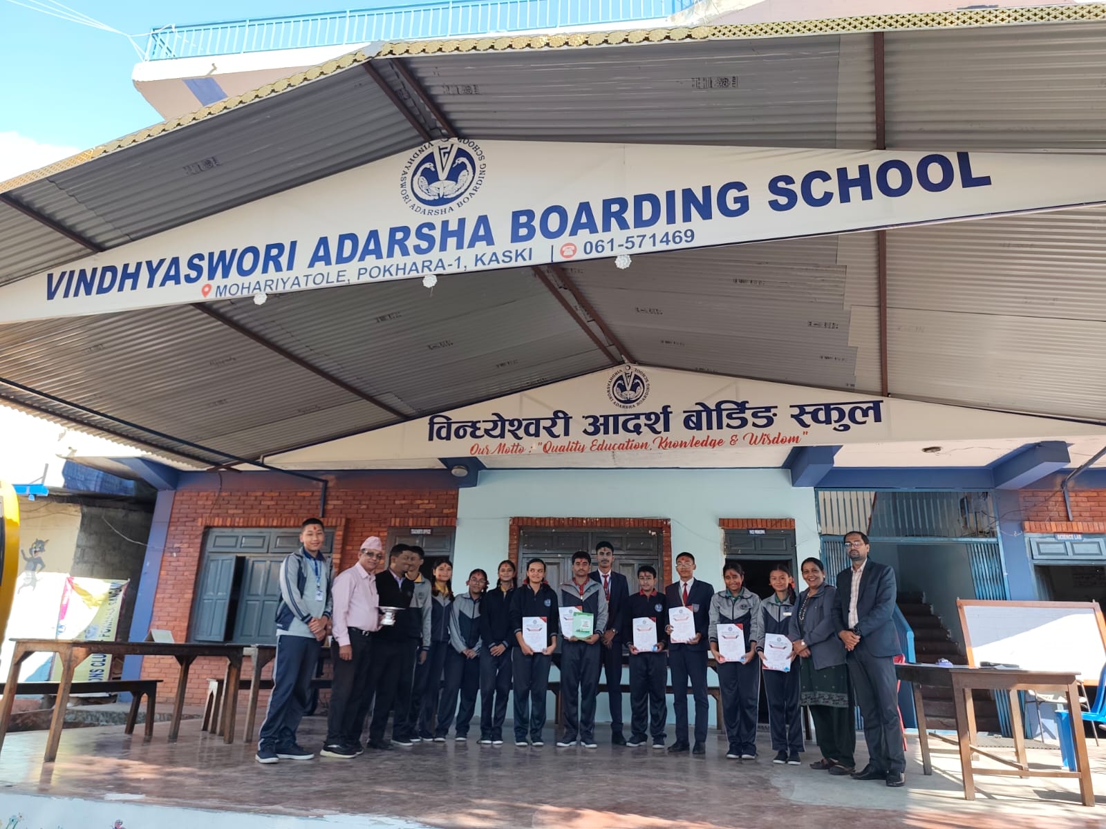 ‘‘गुणस्तरीय शिक्षा, अनुशासन र ज्ञान’’ भन्ने मूल नाराका साथ अगाडि बढिरहेको यस विन्ध्येश्वरी आदर्श बोर्डिङ स्कुल, मोहरिया टोल, पोखरा–१, कास्कीमा शुक्रबारीय कार्यक्रम अन्तर्गत अङ्ग्रेजी स्कील टेष्ट कार्यक्रम सम्पन्न गरियो । मा. वि. तहमा गरिएको उक्त कार्यक्रममा हरियो सदनबाट कक्षा १० मा अध्ययनरत छात्र श्रीष बुद्धाचार्य, कक्षा ९ मा अध्ययनरत छात्रा प्रिस्किला तामाङ र कक्षा ८ मा अध्ययनरत छात्रा मेहुली मन्ना प्रथम र रातो सदनबाट कक्षा १० मा अध्ययनरत छात्रा प्रशंशा कार्की, कक्षा ९ मा अध्ययनरत छात्र दिवस घिमिरे र कक्षा ८ मा अध्ययनरत छात्र विनायक गिरी द्वितीय भएका छन् ।