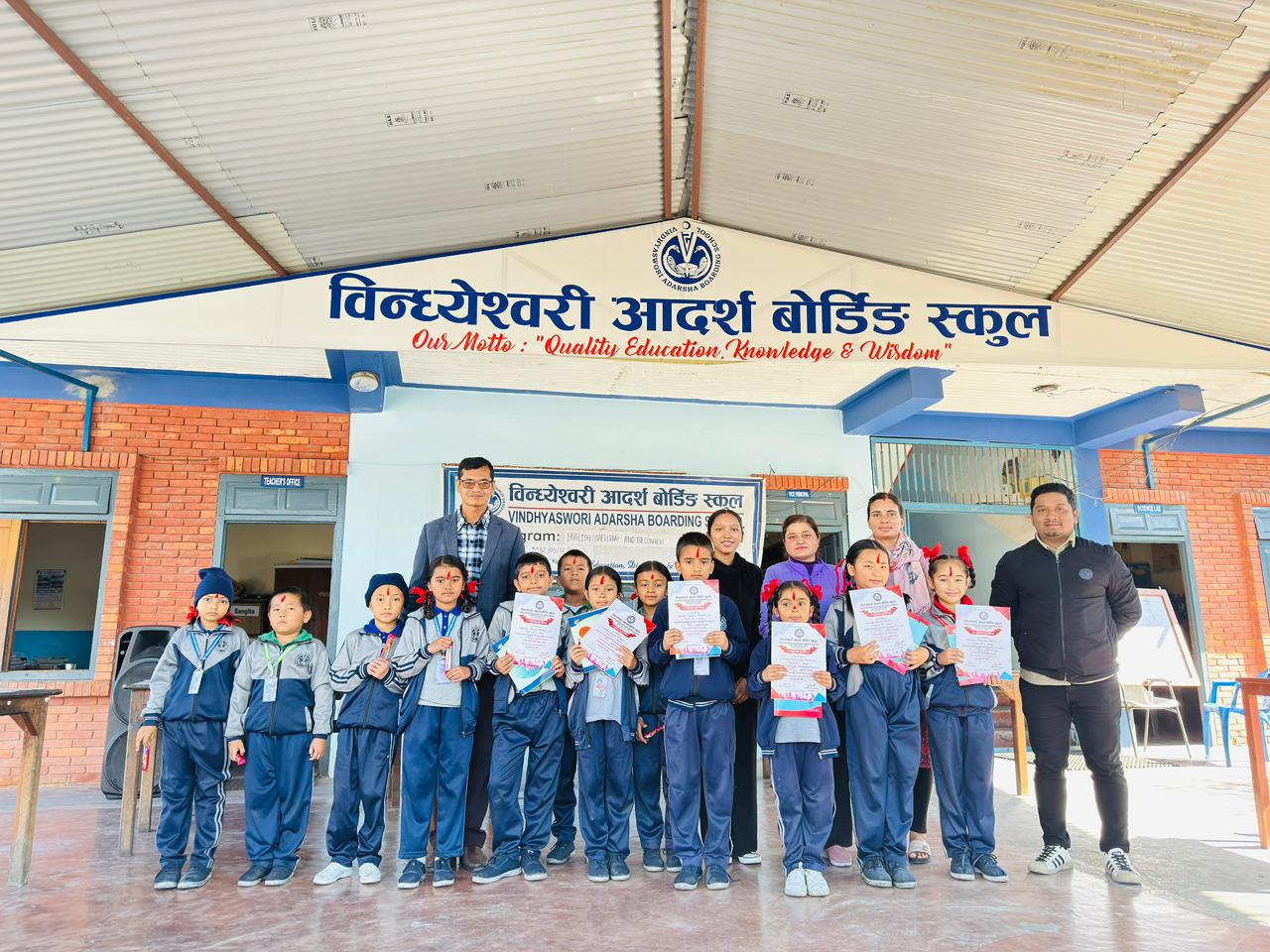 विद्यालयका प्राचार्य कृष्णकुमार श्रेष्ठले उक्त विजेताहरुलाई पुरस्कार तथा प्रमाणपत्र वितरण गर्दै विद्यार्थीहरुमा अझ बढी पढाई तथा खेलकुद सबैमा उत्तिकै लगाव होस् भन्ने हेतुले यस्ता विविध कार्यक्रमहरु हरेक शुक्रबार हुने कुरा जानकारी गराउनुभयो । कार्यक्रममा हिज्जेकर्ता शिक्षिका सिर्जना आचार्यले गर्नुभएको थियो । समय व्यवस्थापन रोजिना लगुनले गर्नुभएको थियो । भने नम्बर स्कोरर शर्मिला शर्माले गर्नुभएको थियो । यस कार्यक्रमको संयोजन अतिरिक्त क्रियाकलाप प्रमुख राजु बयलकोटीले गर्नुभएको थियो ।