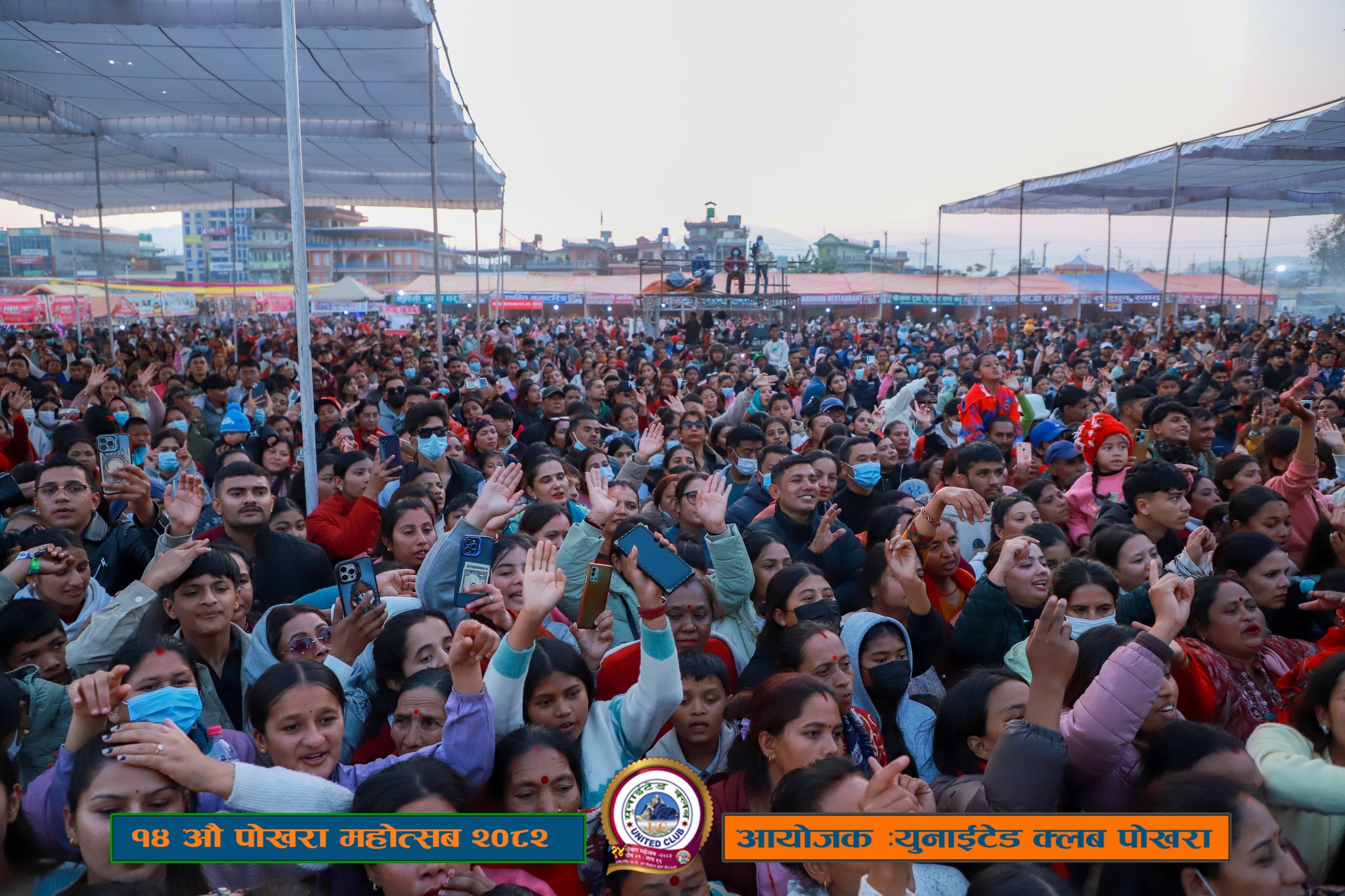 पोखराको अमरसिंह खेल मैदानमा जारी १४ औं संस्करणको पोखरा महोत्सव सातौं दिन सम्म आइपुग्दा दर्शकको घुइचो लागेको छ । अघिल्ला संस्करण जस्तै १४ औं संस्करणको पोखरा महोत्सवमा पनि दर्शकको साथ उल्लेख्य मात्रामा मिलेको हो । महोत्सवको सातौं दिन हजारौं दर्शकले महोत्सवको अवलोकन गरे । महोत्सवमा दर्शकको उपस्थिती संगै महोत्सव स्थलमा राखिएको स्टलहरुमा समेत ब्यापार दिन प्रतिदिन वढ्दै गइरहेको महोत्सवका अर्थ ब्यवस्थापन उपसमिति संयोजक जयराम आचार्यले जानकारी दिए । महोत्सवमा विशेष गरी लत्ता कपडा, घरायसी सामाग्री, कृषिजन्य सामाग्रीको विक्री वढिरहेको उनको भनाइ रहेको थियो ।