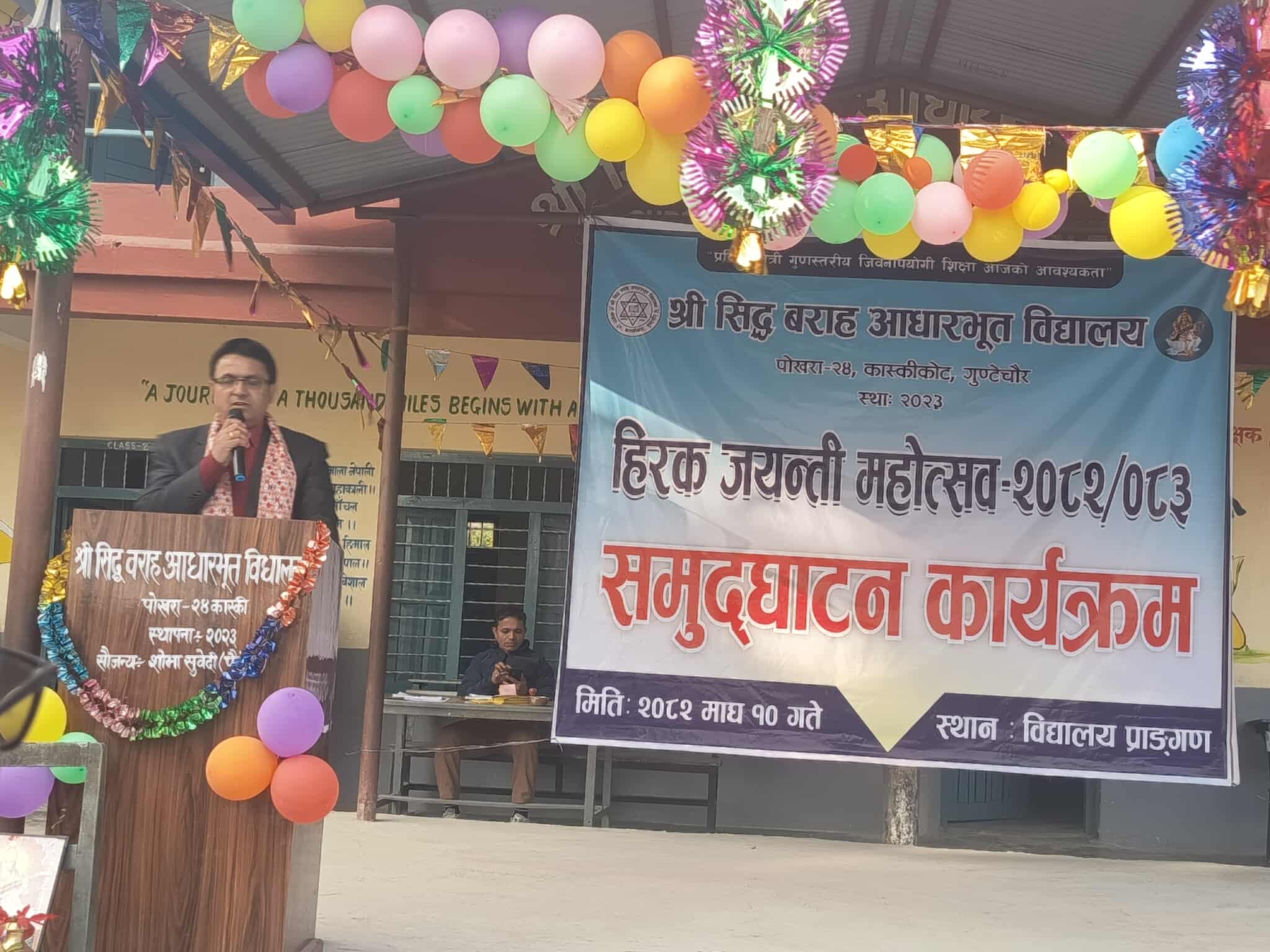 पोखरा–२४, कास्कीकोट गुन्टेचौरमा रहेको सिद्ध बराह आधारभूत विद्यालयको हिरक जयन्ती शुभारम्भ
