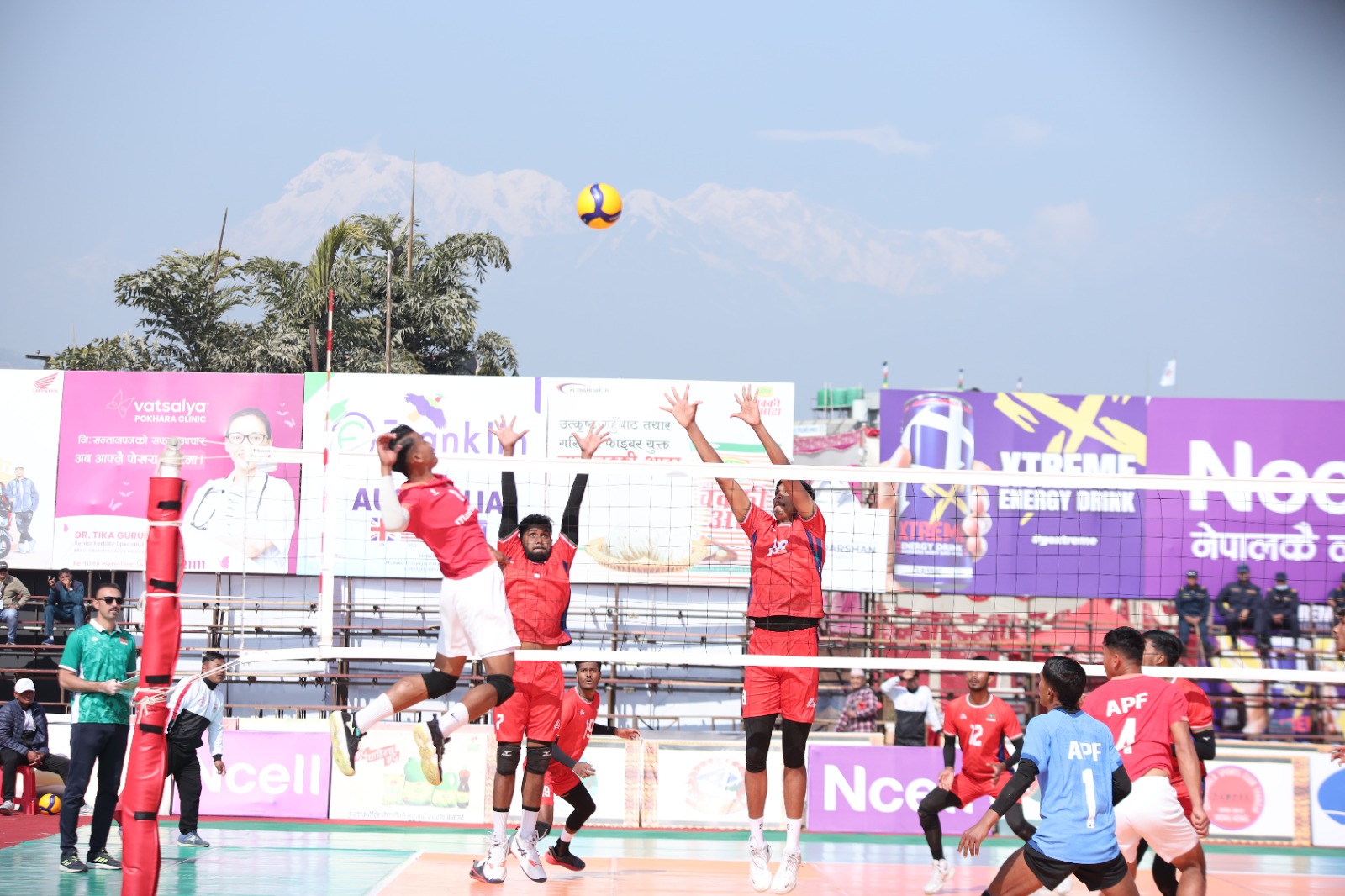 अब आजको अन्तिम खेलमा त्रिभुवन आर्मी क्लब र गण्डकी प्रदेश प्रतिष्पर्धा गर्नेछन् । यसअघि आजै भएको पहिलो खेलमा महिलातर्फ सशस्त्र प्रहरी बल एपीएफले त्रिभुवन आर्मी क्लबलार्य पराजित गरेको थियो । आर्मीविरुद्ध एपीएफले पहिलो सेट २५–११, दोस्रो सेट २५–१८ र तेस्रो सेट २५–१९ ले आफ्नो पक्षमा पार्दै च्याम्पियनसिपमा दोस्रो जित दर्ता ग¥यो । आर्मीले लगातार तेस्रो हार बेहोर्दै फाइनल दौडबाट बाहिरियो । टाइगर ग्रुप अफ पोखरा नेपालको आयोजनामा माघ १७ गतेसम्म चल्ने च्याम्पियनसिपमा पुरुषतर्फ ६ र महिलातर्फ ५ टोली सहभागी छन् । सिंगल राउण्ड रोविनको आधारमा भएको प्रतियोगितामा शीर्ष दुईमा रहने टोली उपाधिका लागि भिड्ने छन् ।