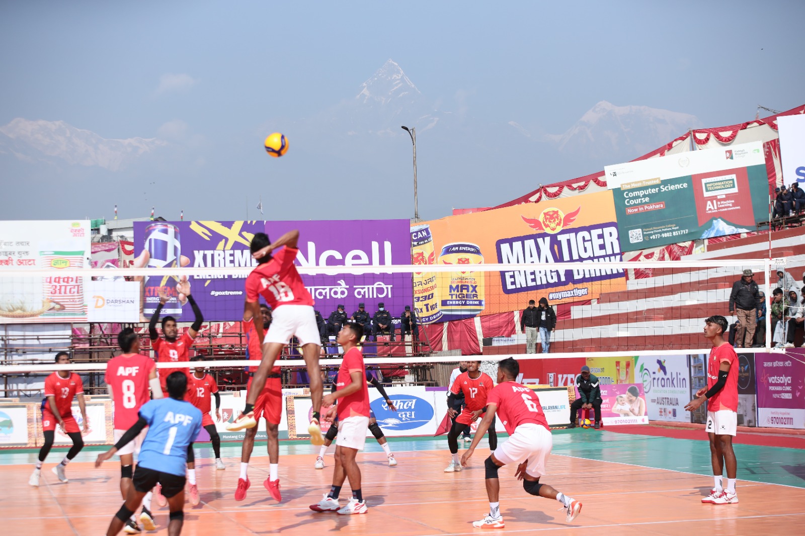 अब आजको अन्तिम खेलमा त्रिभुवन आर्मी क्लब र गण्डकी प्रदेश प्रतिष्पर्धा गर्नेछन् । यसअघि आजै भएको पहिलो खेलमा महिलातर्फ सशस्त्र प्रहरी बल एपीएफले त्रिभुवन आर्मी क्लबलार्य पराजित गरेको थियो । आर्मीविरुद्ध एपीएफले पहिलो सेट २५–११, दोस्रो सेट २५–१८ र तेस्रो सेट २५–१९ ले आफ्नो पक्षमा पार्दै च्याम्पियनसिपमा दोस्रो जित दर्ता ग¥यो । आर्मीले लगातार तेस्रो हार बेहोर्दै फाइनल दौडबाट बाहिरियो । टाइगर ग्रुप अफ पोखरा नेपालको आयोजनामा माघ १७ गतेसम्म चल्ने च्याम्पियनसिपमा पुरुषतर्फ ६ र महिलातर्फ ५ टोली सहभागी छन् । सिंगल राउण्ड रोविनको आधारमा भएको प्रतियोगितामा शीर्ष दुईमा रहने टोली उपाधिका लागि भिड्ने छन् ।