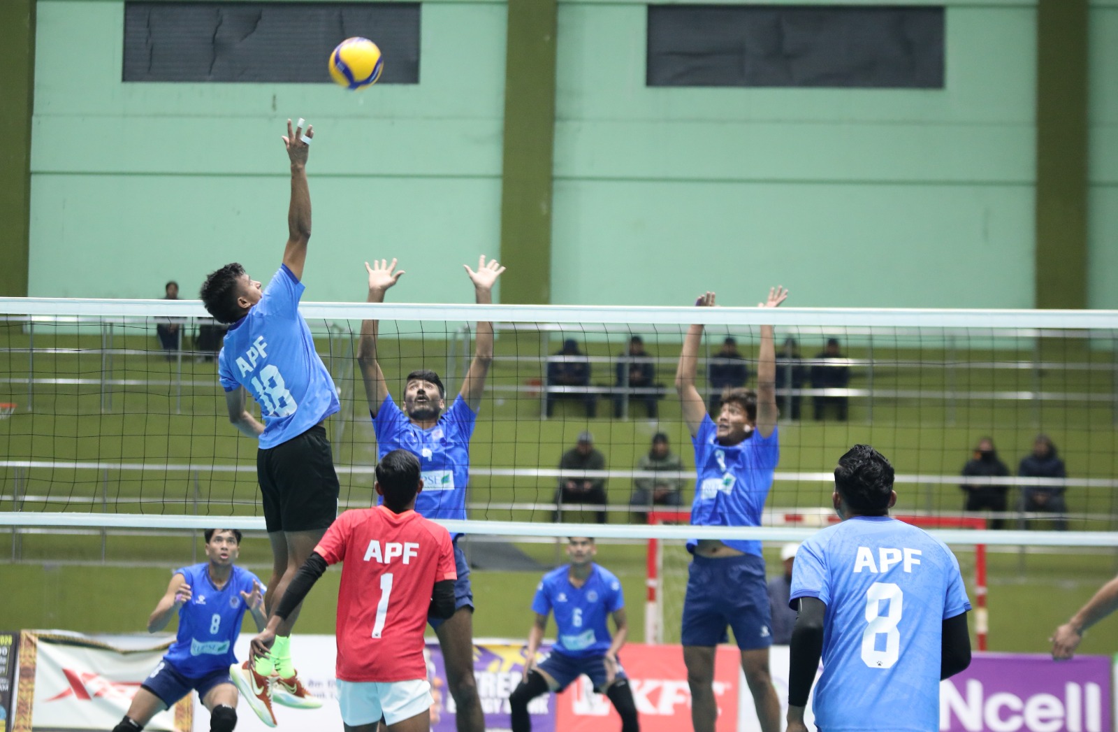 छैटौं टाइगर कप राष्ट्रिय तथा अन्तर्राष्ट्रिय आमन्त्रित क्लव च्याम्पियनसिपमा पुरुषतर्फ नेपाल पुलिस क्लबले सशस्त्र प्रहरी बल एपीएफविरुद्ध सहज जित निकालेको छ । पोखरा रंगशालास्थित बहुउद्देश्यीय कभर्डहलमा जारी च्याम्पियनसिपअन्तर्गत आजको तेस्रो खेलमा पुलिसले एपीएफलाई ३–० को सोझो सेटमा पराजित गरेको हो । पुलिसले पहिलो सेट २५–२२, दोस्रो सेट २८–२६ र तेस्रो सेट २५–१५ ले जित निकाल्यो । अब आजको अन्तिम खेल त्रिभुवन आर्मी क्लब र पर्वत जिल्ला भलिबल संघ भिड्नेछन् ।