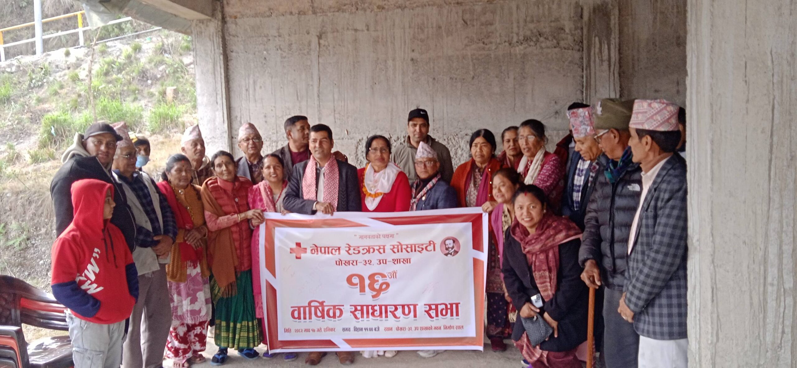 ‘मानवताको पक्षमा‘ भन्ने नाराका साथ नेपाल रेडक्रस सोसाइटी (नेरेसो) पोखरा महानगरपालिका वडा नं. ३२ उपशाखाको १६औँ वार्षिक साधारणसभा आज संस्थाको आफ्नै भवनमा सम्पन्न भएको छ । साधारणसभाको उद्घघाटन गर्दै कार्यक्रमका प्रमुख अतिथि तथा पोखरा महानगरपालिका वडा नं. ३२ का वडाध्यक्ष अक्कल बहादुर कार्कीले रेडक्रसले प्राथमिक उपचार, विपद् तथा प्रकोपको समयमा राहत तथा उद्धार कार्य गर्दै आएको उल्लेख गरे। उनले विपन्न तथा असहाय परिवारहरूको अवस्थालाई मध्यनजर गर्दै मानवीय क्षति न्यूनीकरणमा रेडक्रसले उल्लेखनीय योगदान पु¥याउँदै आएको बताए। साथै, संस्थाको निर्माणाधीन पक्की भवनका लागि नपुग रकममध्ये १५ लाख रुपैयाँ सहयोग गर्ने प्रतिबद्धता समेत व्यक्त गरे ।