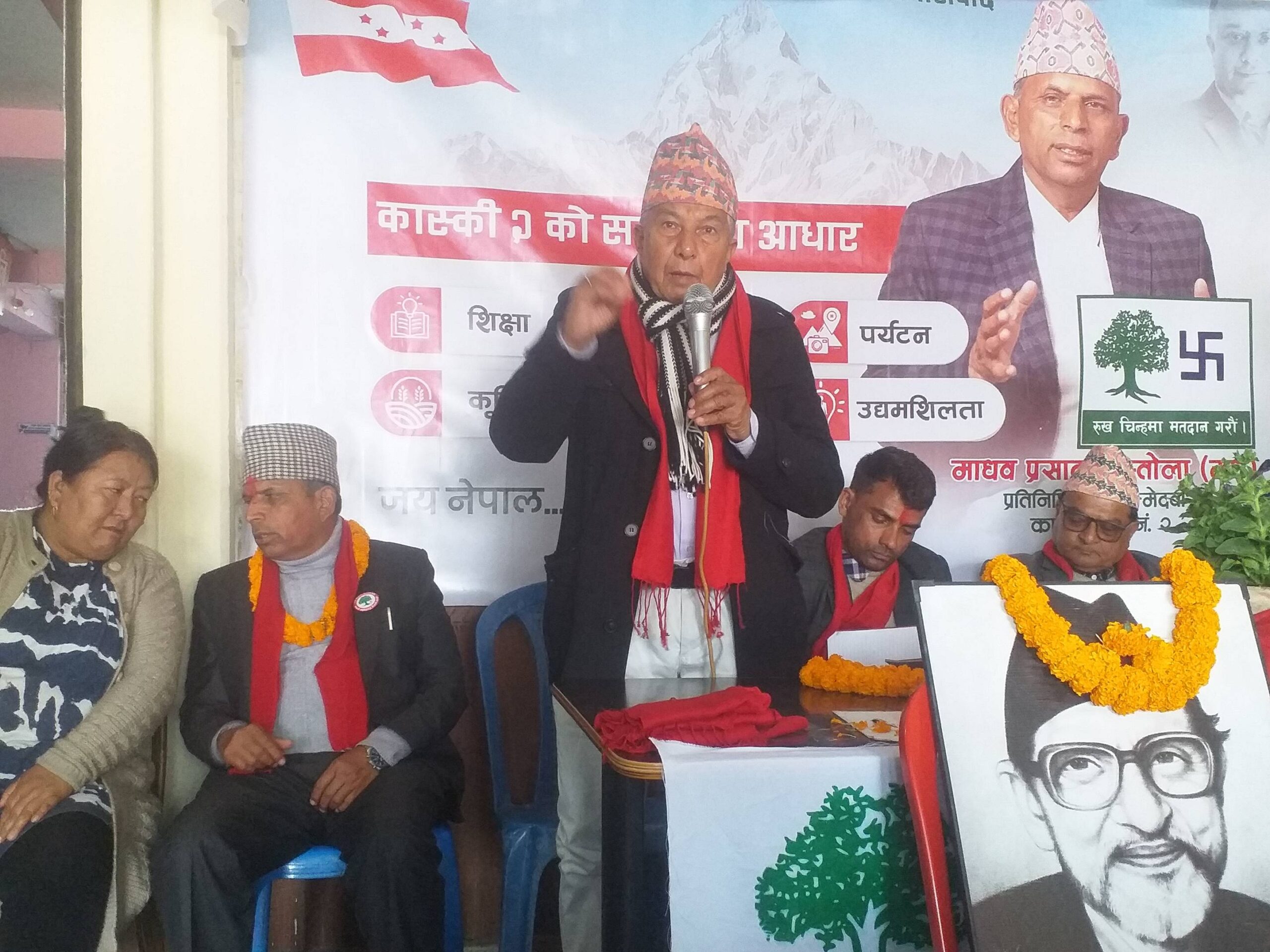 सभापति शर्माले काँग्रेस कमजोर हुँदा देश कमजोर हुने भएकाले काँग्रेसलाई बलियो बनाउने दायित्व सबै नेपालीको भएको बताउँदै प्रजातन्त्रमा विश्वास राख्ने पार्टी नेपाली काँग्रेसमा लागेर देशको सेवा गर्न सबै नेपालीलाई आग्रह गरे । नोपली काँग्रेसले युवालाई अगाडि सार्ने नीति अनुसार पार्टी सभापति युवा नेता गगन थापालाइ बनायौ, भावि प्रधानमन्त्री पनि उहाँलाई नै बनाउने योजनाकासाथ नेपाली काँग्रेस अगाडि वढेको भनाइ उनको थियो । नेपाली काँग्रेस अब सुधारिएको छ, पार्टीको नेतृत्व पनि युवाको काँधमा गएकाले युवा मतदाताले पनि एक पटक काँग्रेसलाई विश्वास गर्न आवश्यक छ उनले भने । नेपाली काँग्रेस कास्की निर्वाचन क्षेत्र नं २ का तर्फबाट उम्मेदवार माधवप्रसाद बाँस्तोलाले नेपाली काँग्रेसले देशलाई कमजोर हुनबाट बचाउने भएकै कारण काँग्रेसलाई विश्वास गर्न आम मतदातासँग आग्रह गरे । युवालाई स्वदेशमा नै अवसरहरु सृजनागरी विदेशमा दिने सुविधा यही दिन सकिने भनाइ उनको छ ।