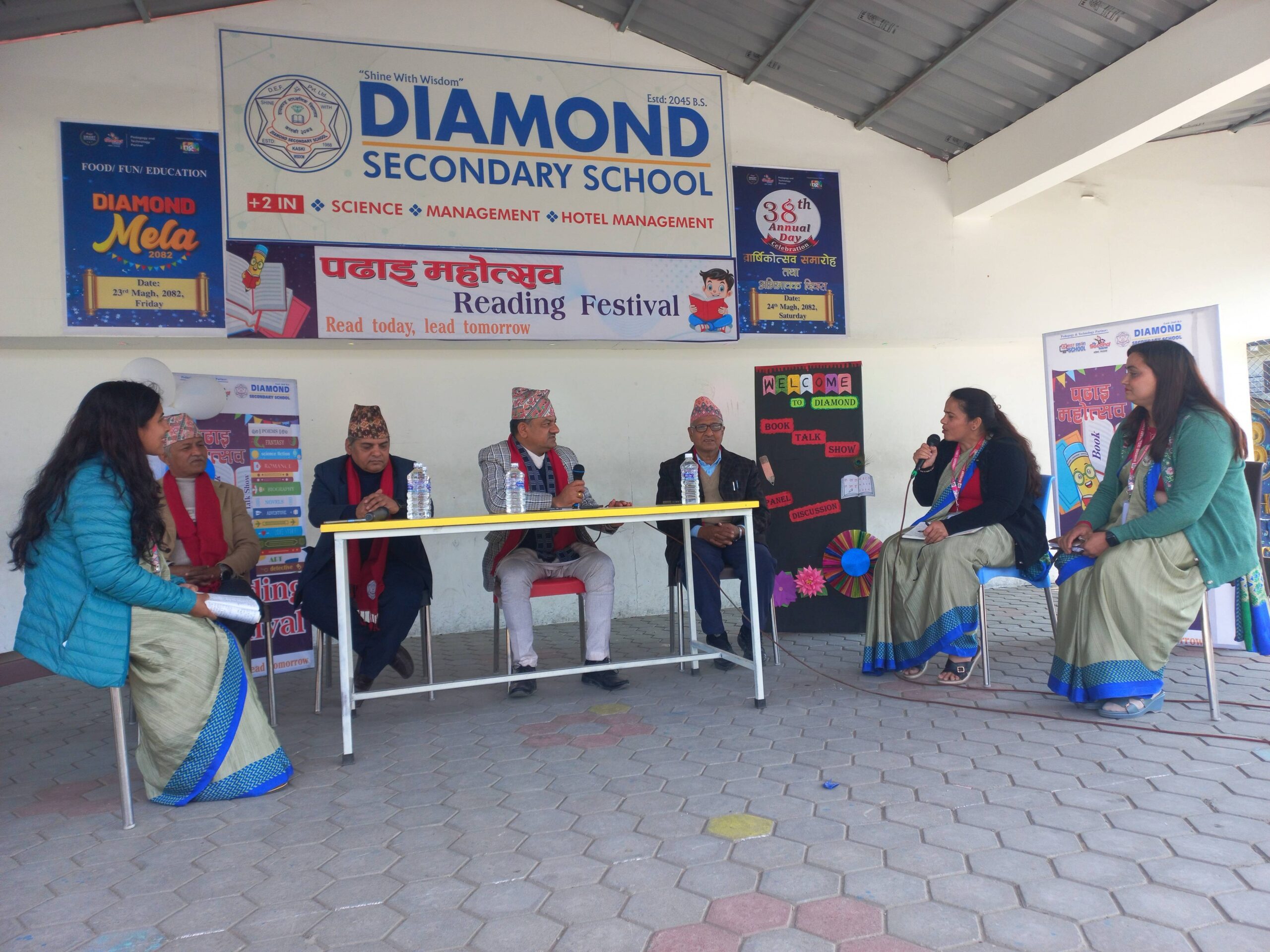 पोखरा–२७, तालचोकस्थित डायमण्ड सेकेन्डरी स्कूलमा “Read Today, Lead Tomorrow” भन्ने मूल नारासहित पठन महोत्सव २०८२ बाट सुरु हुने तीन दिने शैक्षिक, साहित्यिक तथा सांस्कृतिक कार्यक्रम विहीबारदेखि सुरु भएको छ। तीन दिनसम्म सञ्चालन हुने यस कार्यक्रममा पठन महोत्सव, डायमण्ड मेला (Food, Education & Fun) तथा ३८औँ वार्षिक उत्सव समेटिएको छ। विद्यार्थीमा रहेको अन्तरनिहीत क्षमता उजागर गर्ने उद्देश्यले विद्यालयले कार्यक्रम आयोजना गरेको हो। पहिलो दिन पठन महोत्सव २०८२ औपचारिक उद्घाटन समारोहसहित सुरु गरिएको थियो, जहाँ राष्ट्रगान, विद्यालय प्रार्थना, ध्यान, १० मिनेटको सामूहिक “Read Aloud Session” आयोजना गरिएको थियो।