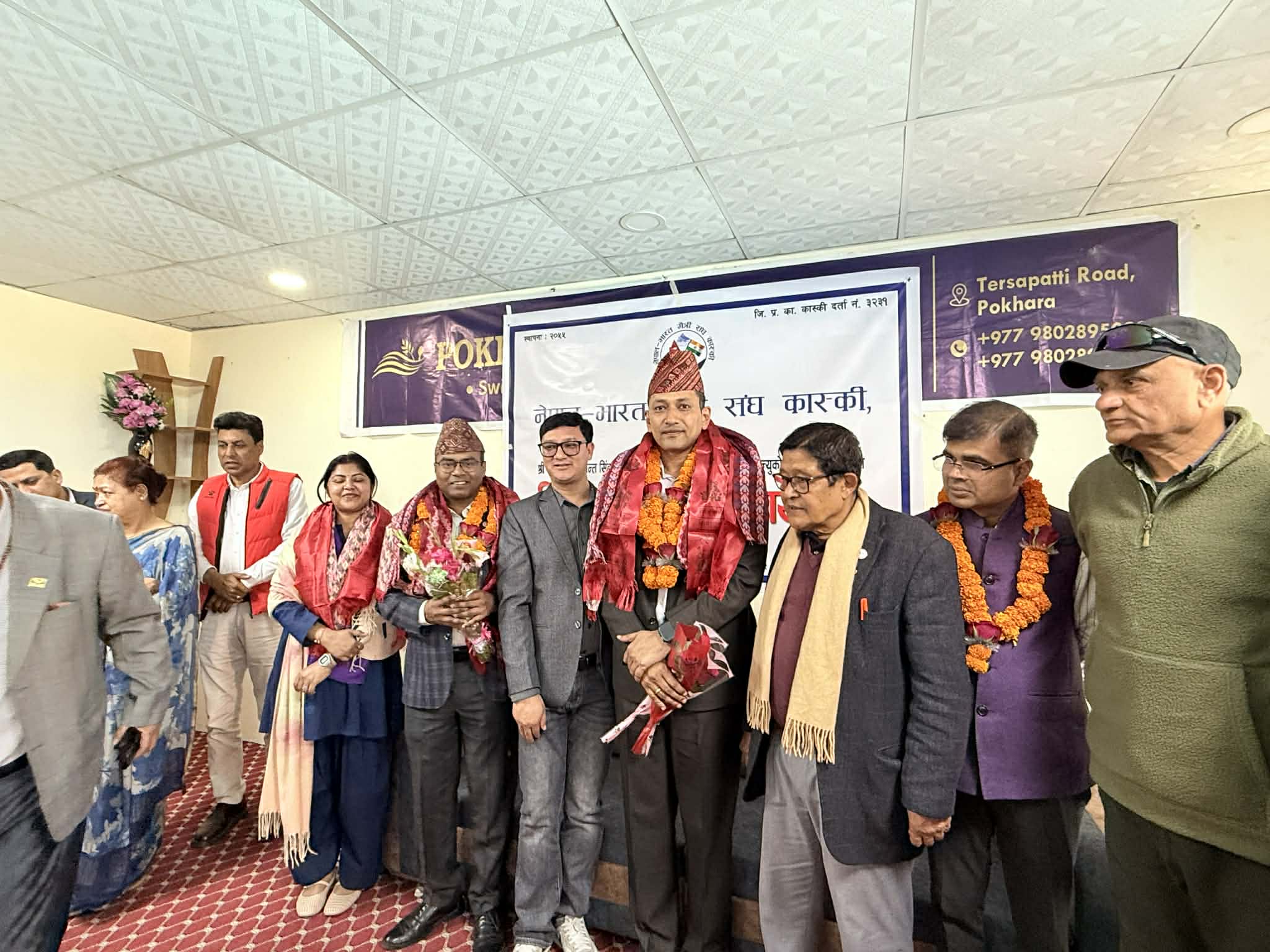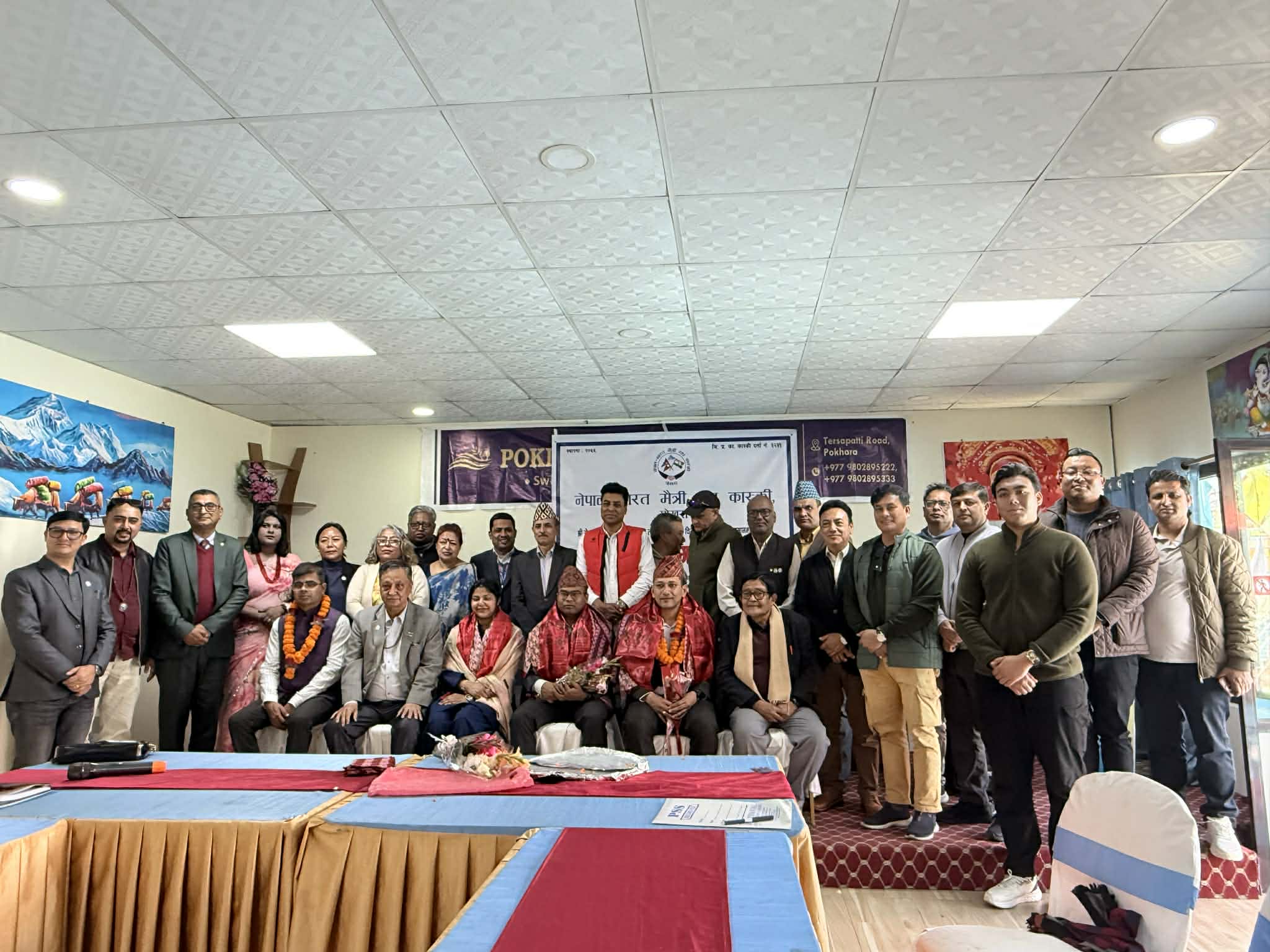 नेपाल–भारत मैत्री संघ कास्कीको आयोजनामा पोखरामा एक विशेष विदाइ तथा स्वागत कार्यक्रम सम्पन्न भएको छ। कार्यक्रममा संघका पदाधिकारी, सदस्यहरू, नेपाल एस.बी.आई बैंकका कर्मचारी तथा पोखरा पीपीओका प्रतिनिधिहरूको उल्लेखनीय उपस्थिति रहेको थियो। कार्यक्रमको स्वागत मन्तव्य संघका पूर्व अध्यक्ष श्री गोपाल धोजूले व्यक्त गर्नुभएको थियो। उहाँले संघले विगतदेखि गर्दै आएका गतिविधिहरूको स्मरण गर्दै नेपाल र भारतबीचको मैत्री सम्बन्ध सुदृढ बनाउन यस्ता कार्यक्रमको महत्त्वपूर्ण भूमिका रहने बताउनुभयो।