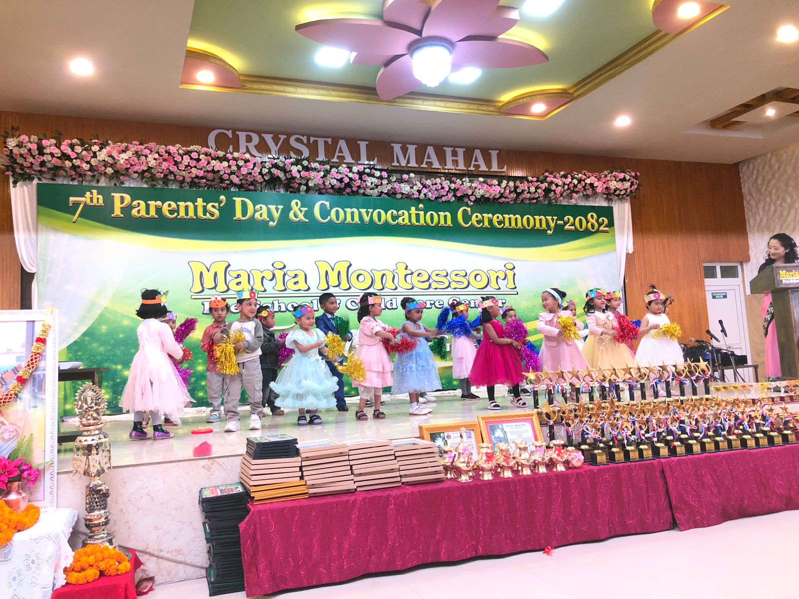 पोखरा ७ मासबारमा रहेको मारिया मन्टेश्वरी प्रि स्कुल एन्ड चाइल्ड केयर सेन्टरको ७ औं अभिभावक दिवस, दिक्षान्तसमारोह सम्पन्न भएको छ । बालबालिकाका विभिन्न प्रतिभा प्रस्फुटन, पुरस्कार वितरण सहित कक्षा युकेजीका विधार्थीको दिक्षान्त समारोहर कक्षा ३ का विधार्थीको विदाइ कार्यक्रम सम्पन्न भएको हो ।कार्यक्रमको उद्घाटन गर्दै पोखरामहानगरपालिकाका शिक्षा महाशाखा प्रमुख हेम प्रसाद आचार्यले शिक्षाको उपलब्धी विद्यार्थीलेल्याउने नतिजाले नभइ बाल प्रतिभाको खोजी गर्दै उनिहरुको इच्छा अनुसारको शिक्षा प्राप्तगर्नु रहेको बताए । मन्टेश्वरी एशोसियशन कास्कीका अध्यक्ष रितुपौडेलले मन्टेश्वरीमा शिक्षित बालबालिकाहरु जुनसुकै विद्यालयमा गए पनि हरेक क्रियाकलापतथा प्रतिस्पर्धामा अब्बल सावित भएको बताइन् । कार्यक्रममा अभिभावकको तर्फबाट रितुपौडेल र लक्ष्मण बराल शान्त, पारिवारिक वातावरण र शिक्षण सिकाइका हरेक दृष्टिकोणलेमारिया अब्बल देखेर नै रोजाइमा परेको बताए ।