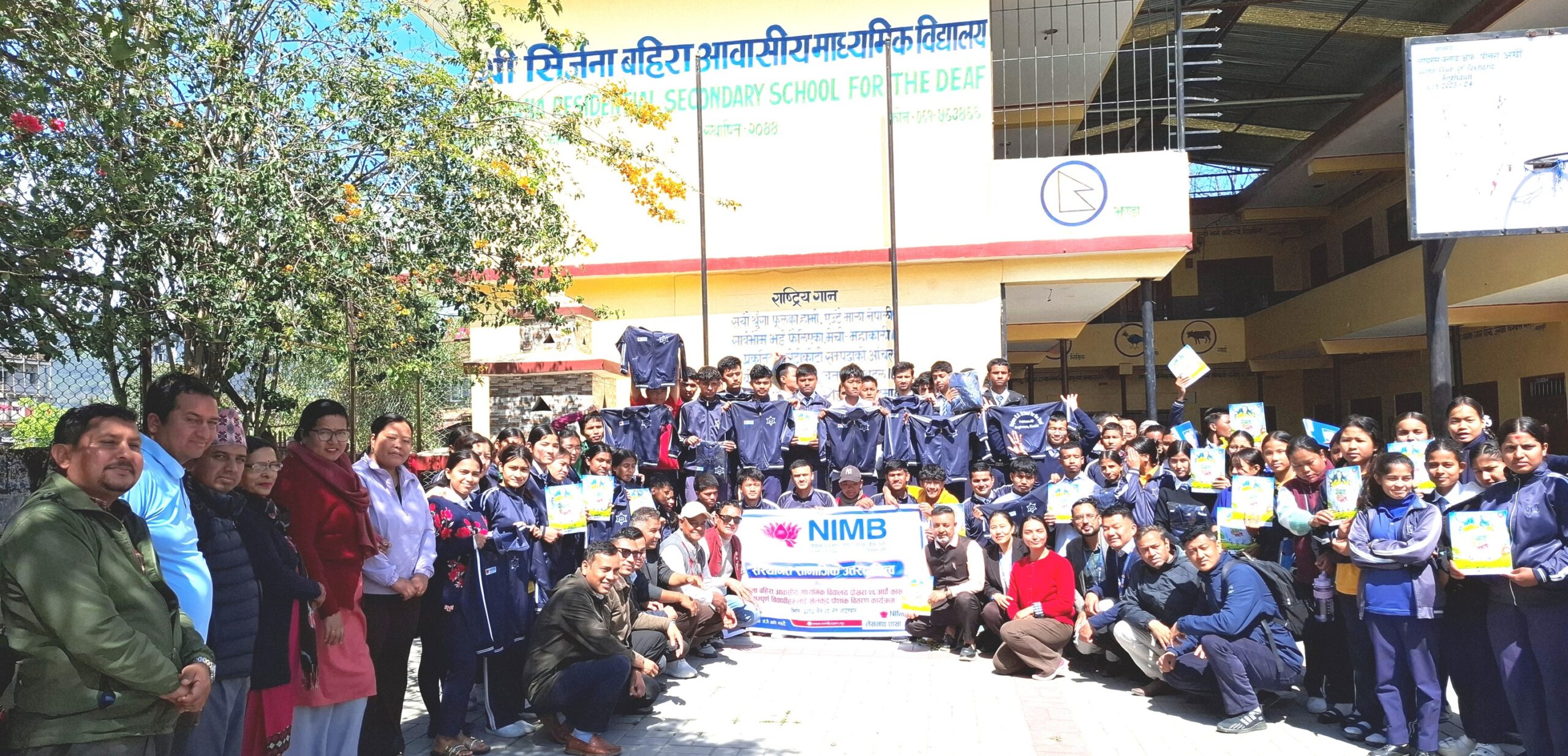 एनआईएमबी बैंकले पोखरा महानगरपालिका वडा नंं २६ मा रहेको सिर्जना बहिरा आवासिय माध्यामिक विद्यालयका एकसय ८१ बालबालिकालाई आईतबार पोशाक बितरण गरेको छ । संस्थागत सामाजिक उत्तरदायित्व अन्र्तगत बैंकले लेखनाथ शाखा मार्फत बहिरा विद्यार्थीलाई ट्रयाकसुट बितरण गरेको हो । विद्यार्थीलाई पोशाक हस्तान्तरण गर्दै पोखरा महानगरपालिका वडा नंं २६ का अध्यक्ष नरेन्द्र थापाले बित्तिय संस्थाले सामाजिक उत्तरदायित्व मार्फत कम अवसर प्राप्त भएका नागरिकका लागि सहयोग गर्नु पर्नेमा जोड दिनु भयो । अध्यक्ष थापाले वित्तिय संस्थाहरुसँग सिसि क्यामेरा, सडक बत्ती र डिजिटल बैंकिङका क्षेत्रमा स्थानीय सरकारको तर्फबाट वडाले सहकार्य गर्न सक्ने प्रतिवद्धता जनाउनु भयो ।