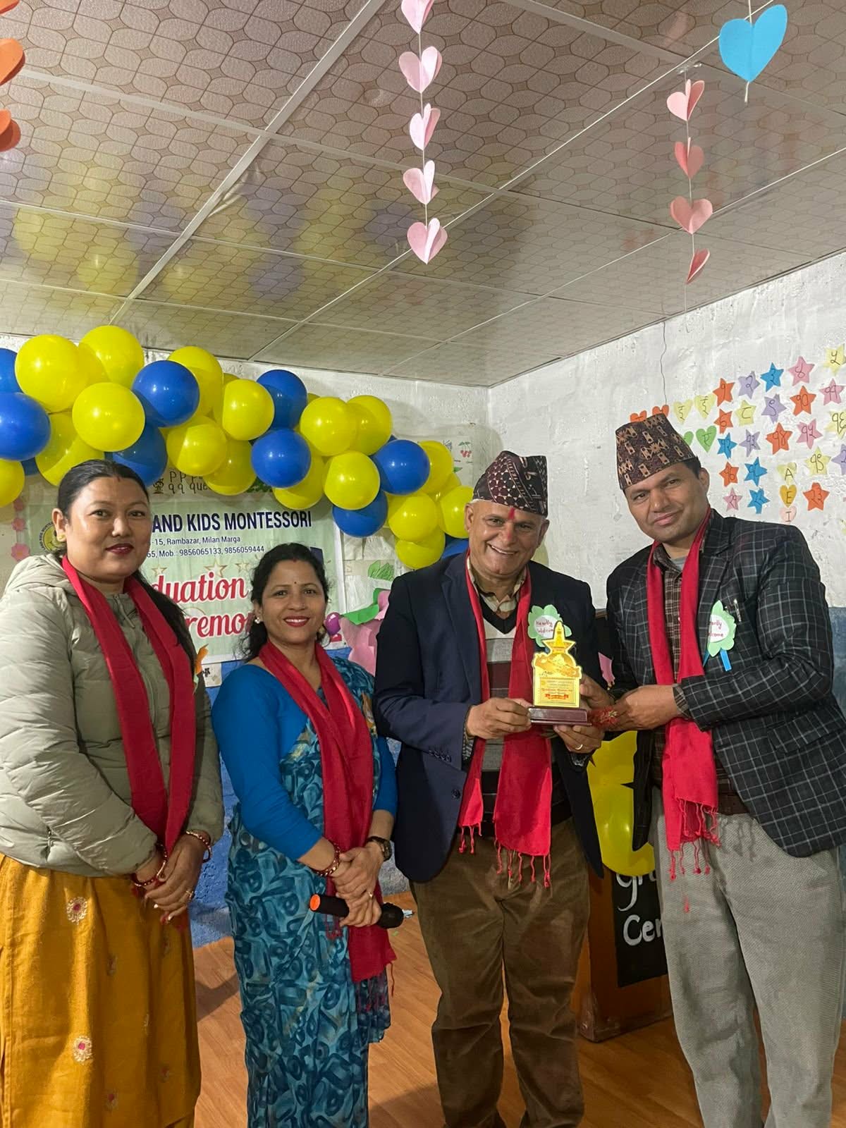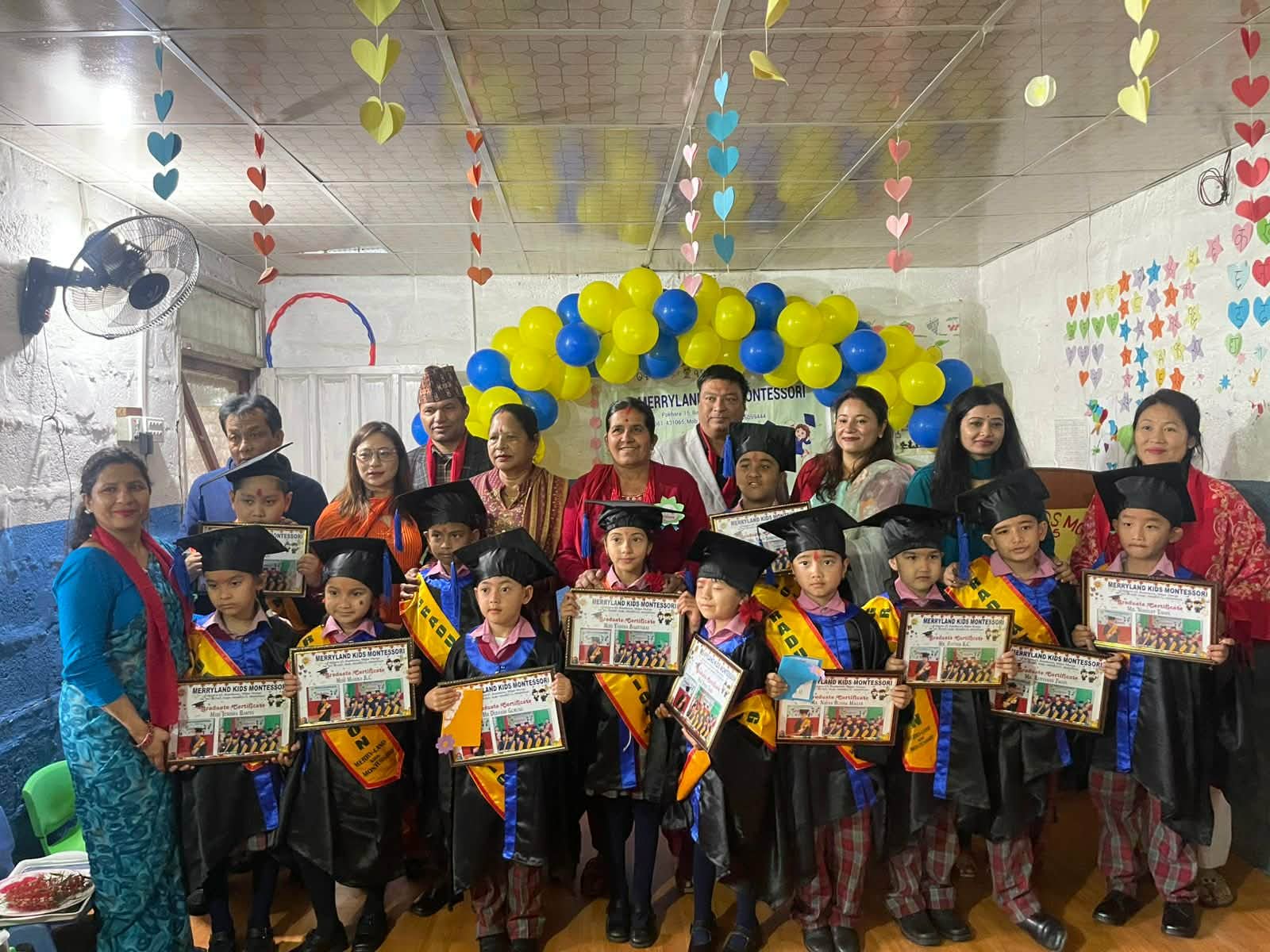 पोखरा महानगर पालिका वडा नं. १५, मिलन मार्गमा रहेको मेरिल्याण्ड किड्स मन्टेश्वरीमा दिक्षान्त समारोह सम्पन्न भएको छ । पोखरा महानगर पालिका वडा नं. १५ का वडा सदस्य बलराम पौडेलको प्रमुख आतित्थ्यतामा सम्पन्न कार्यक्रम मन्टेश्वरीका सस्थापक प्रिन्सिपल सीता तिमिल्सिना सुबेदीको सभापतित्वमा सम्पन्न भएको थियो । प्रमुख अतिथि पौडेलले मेरिल्याण्ड किड्स मन्टेश्वरी वडा नं. १५, को पहीलो मन्टेश्वरी रहेको र यसले बालबालीकाको आवश्यकता र बाल मनोबिज्ञान अनुसार सेवा दिदै आइरहेको बताउनुभयो । पौडेलले अभिभावकले आफ्ना बाबुनानिहरुको बिद्यालय छान्दा ठूला ठूला भौतिक संरचना भएको शैक्षिक संस्थाबाट मात्र गुणस्तरिय शिक्षा प्राप्त हुन्छ भन्ने सोचाई राख्न नहुने र सानै भौतिक संरचनाबाट पनि बाबुनानीहरुको लागि उपयुक्त वातावरणमा गुणस्तरिय शिक्षा प्रदान गर्न सकिने बताउनु भयो ।